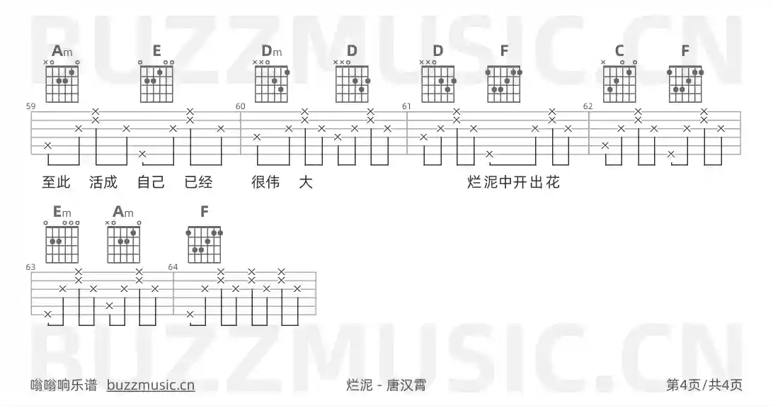 分析《烂泥》这首歌的吉他谱,可以看出它的难度属于中等水平。歌曲主要使用C调,没有使用变调夹,节奏较慢(BPM 66),适合初学者和中级玩家练习。和弦部分包括F、Em、Am、A、C、E、G、D、F#m和Dm,这些都是基础和弦,对于初学者来说较为友好。